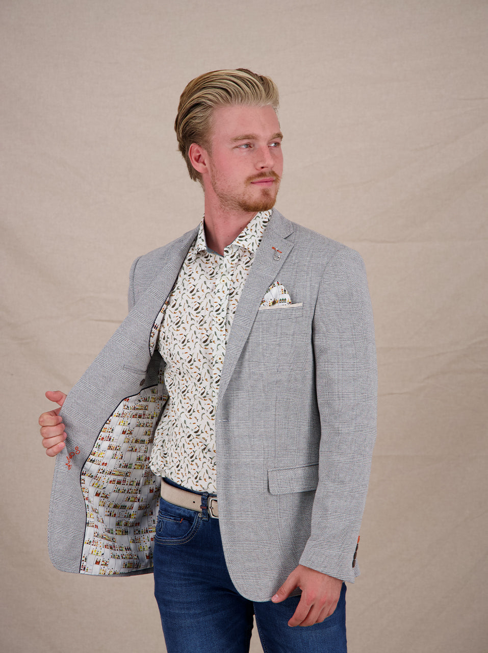 Blazer with plaid pattern and playful lining. A statement piece that adds character to your look.
