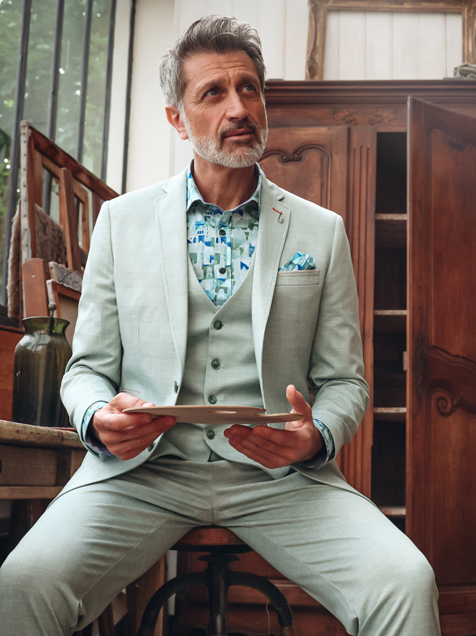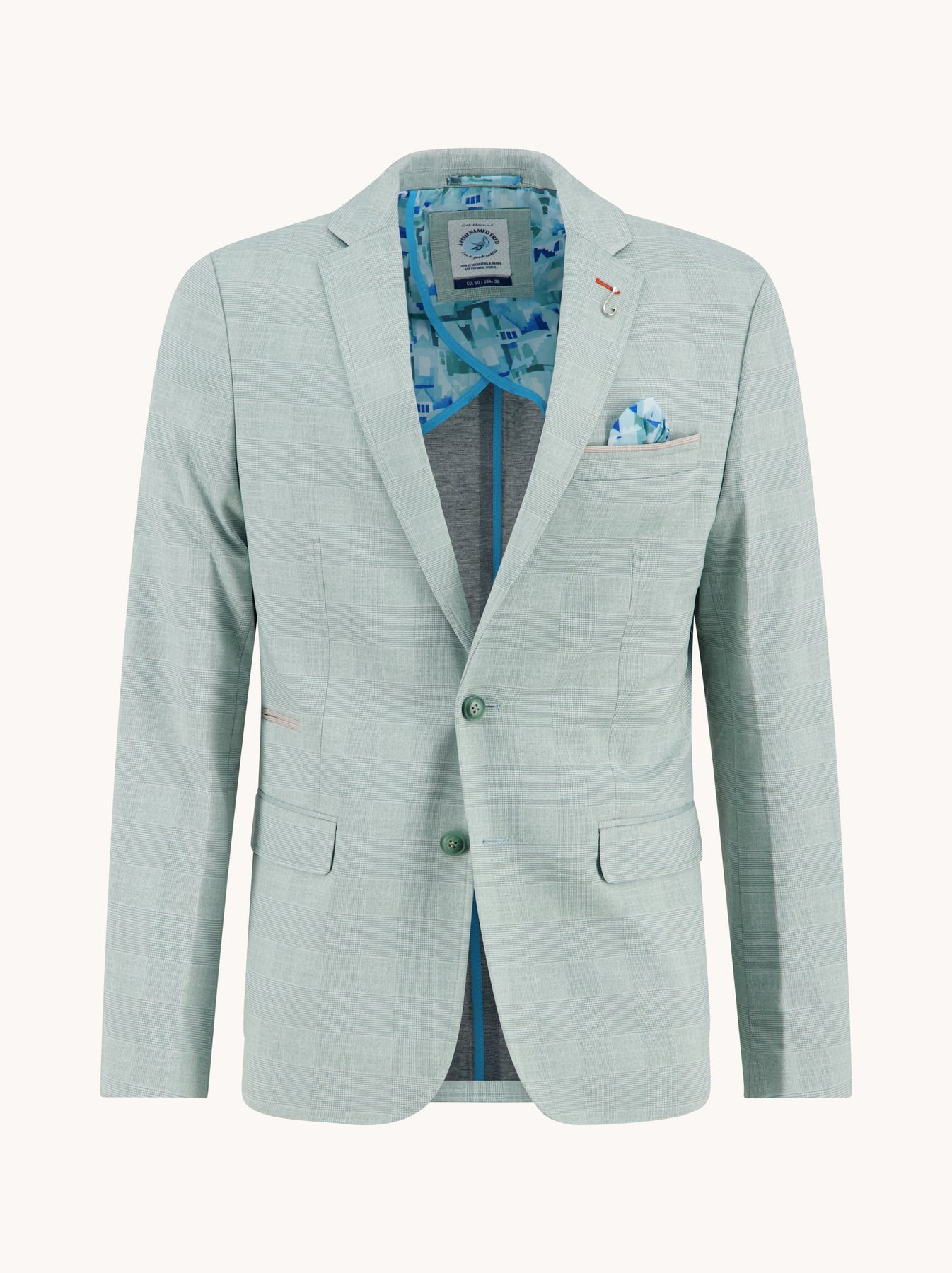 Step into the new season with the Travel blazer by A fish named Fred. Designed for warm days and style-conscious men, this lightweight blazer features a subtle checked texture on the outside and a bold printed lining inspired by modern cityscapes.
