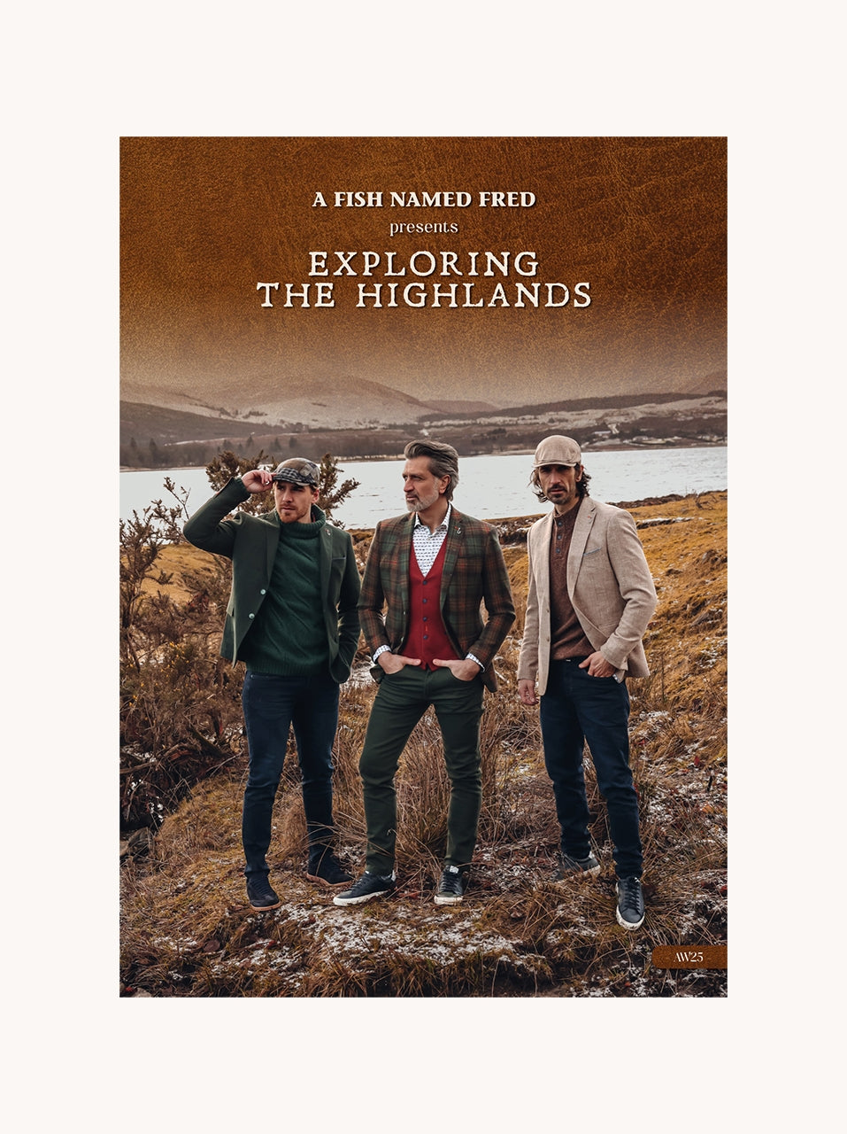 Tiefe Grüntöne, Whiskybraun und neblige Grautöne spiegeln die wilde Landschaft der Highlands wider, während verspielte Fred-Details für einen modernen Touch sorgen. Von karierten Blazern bis hin zu traditionell inspirierten Hemden – Exploring the Highlands zelebriert zeitlose Herrenmode mit einem gewagten Touch für alle, die das Leben als ein einziges großes Abenteuer erleben.