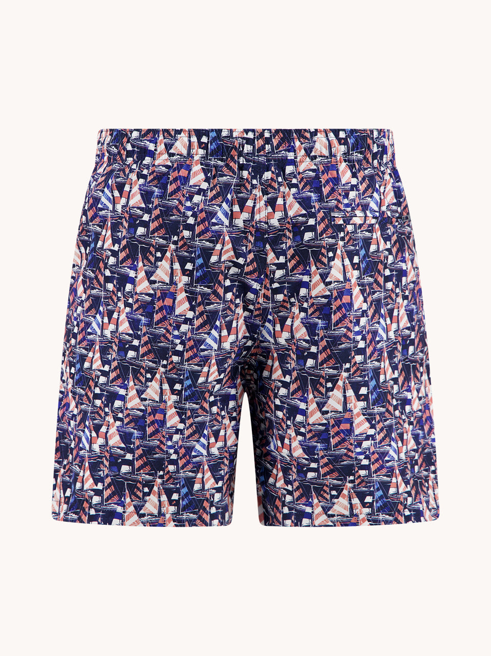 Volle Fahrt voraus mit den Swimshort Sailing Boats von A fish named Fred. Diese auffälligen Badeshorts zeigen einen fröhlichen Allover-Print mit Segelbooten und bringen maritimes Flair in deinen Sommerlook.
