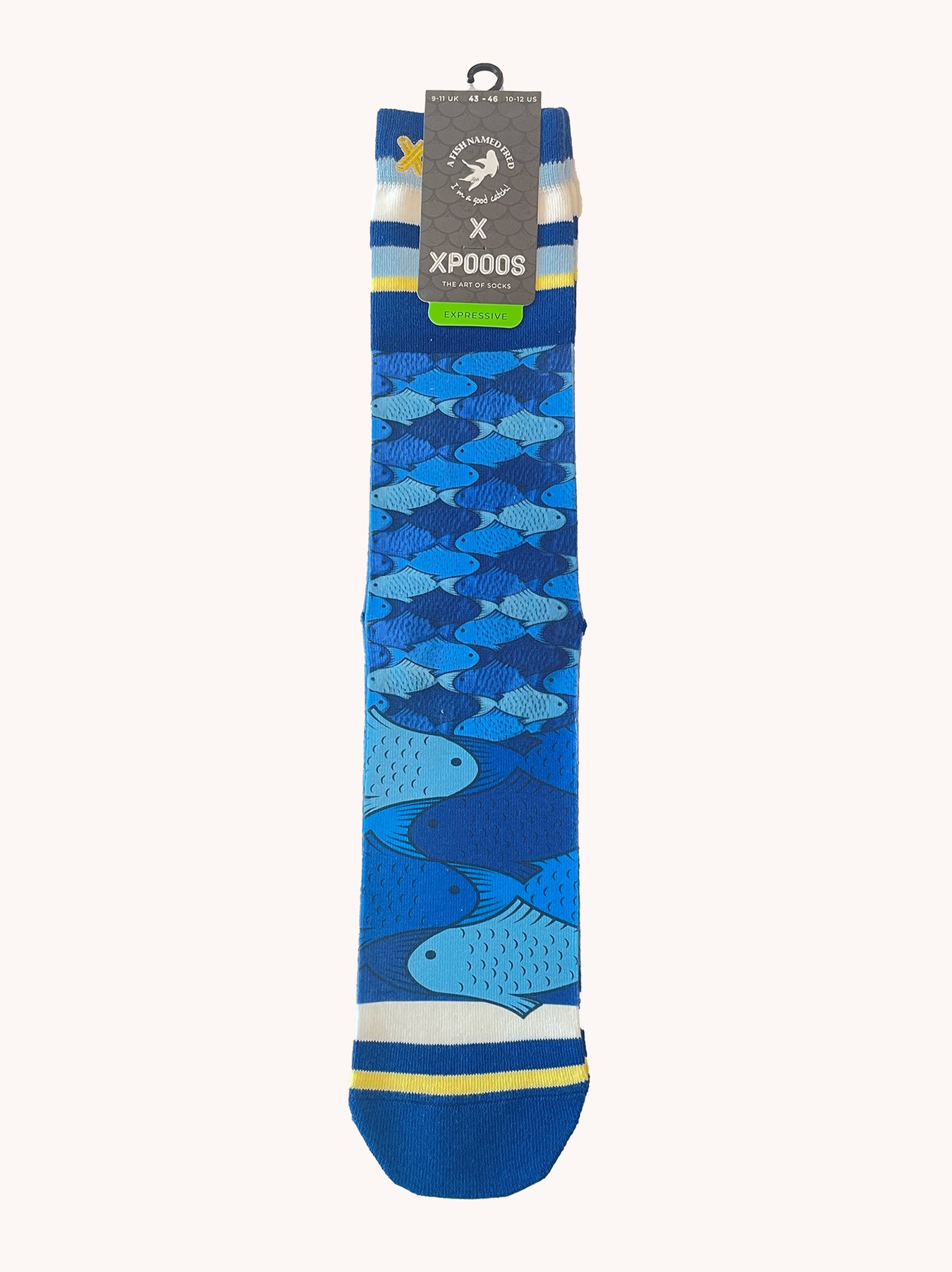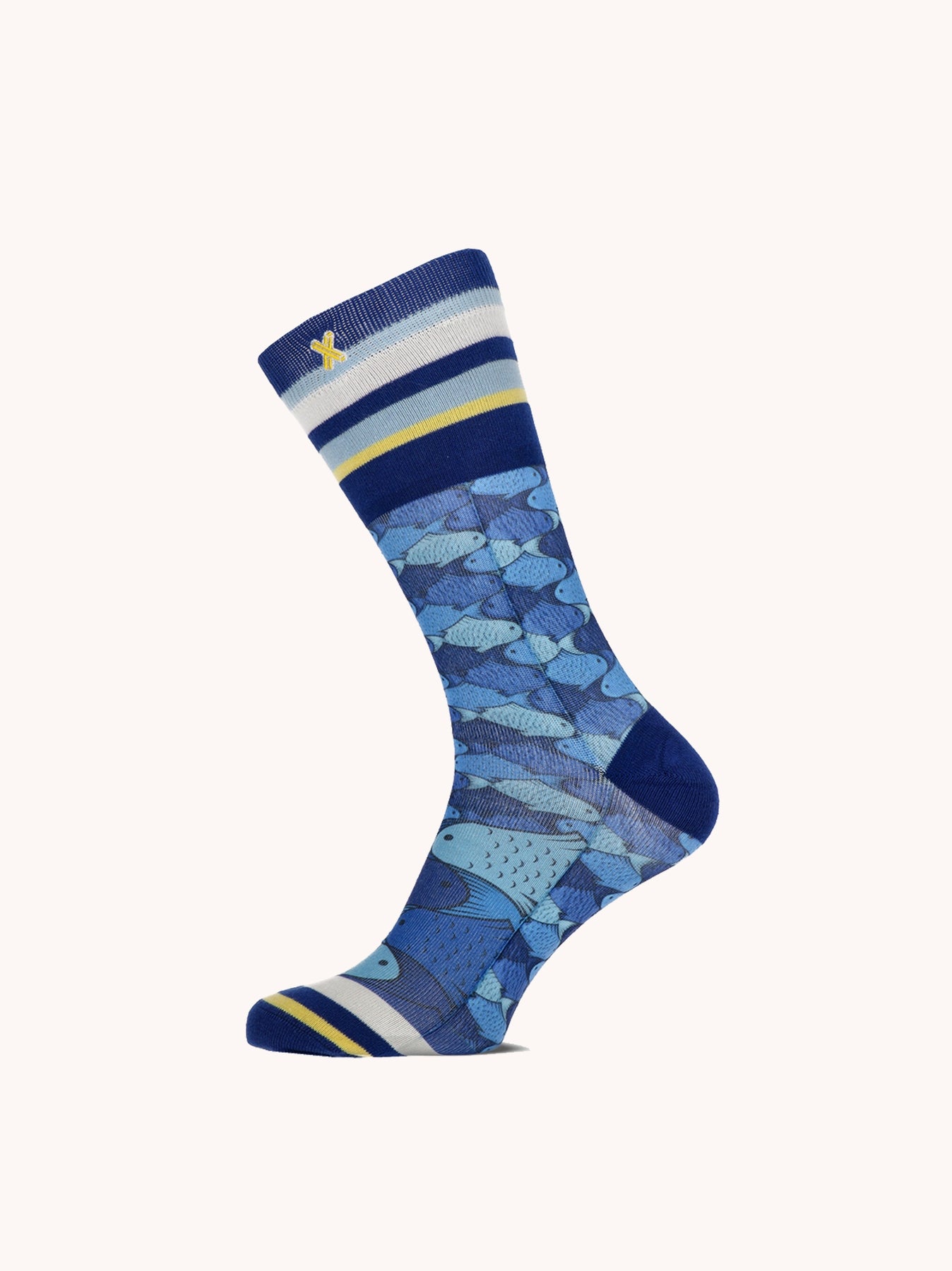 Eén paar sokken, oneindig veel karakter. De Socks Graphic Fish combineren een speelse print van blauwe vissen met comfort en stijl. Perfect voor elke Fred die zijn sokken een statement wil laten maken. Ontworpen in samenwerking met XPOOOS.