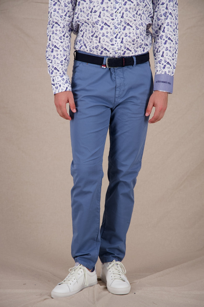 Deze chino met garment dye afwerking is verkrijgbaar in verschillende kleuren. Een veelzijdige broek die je zowel casual als netjes kunt dragen.