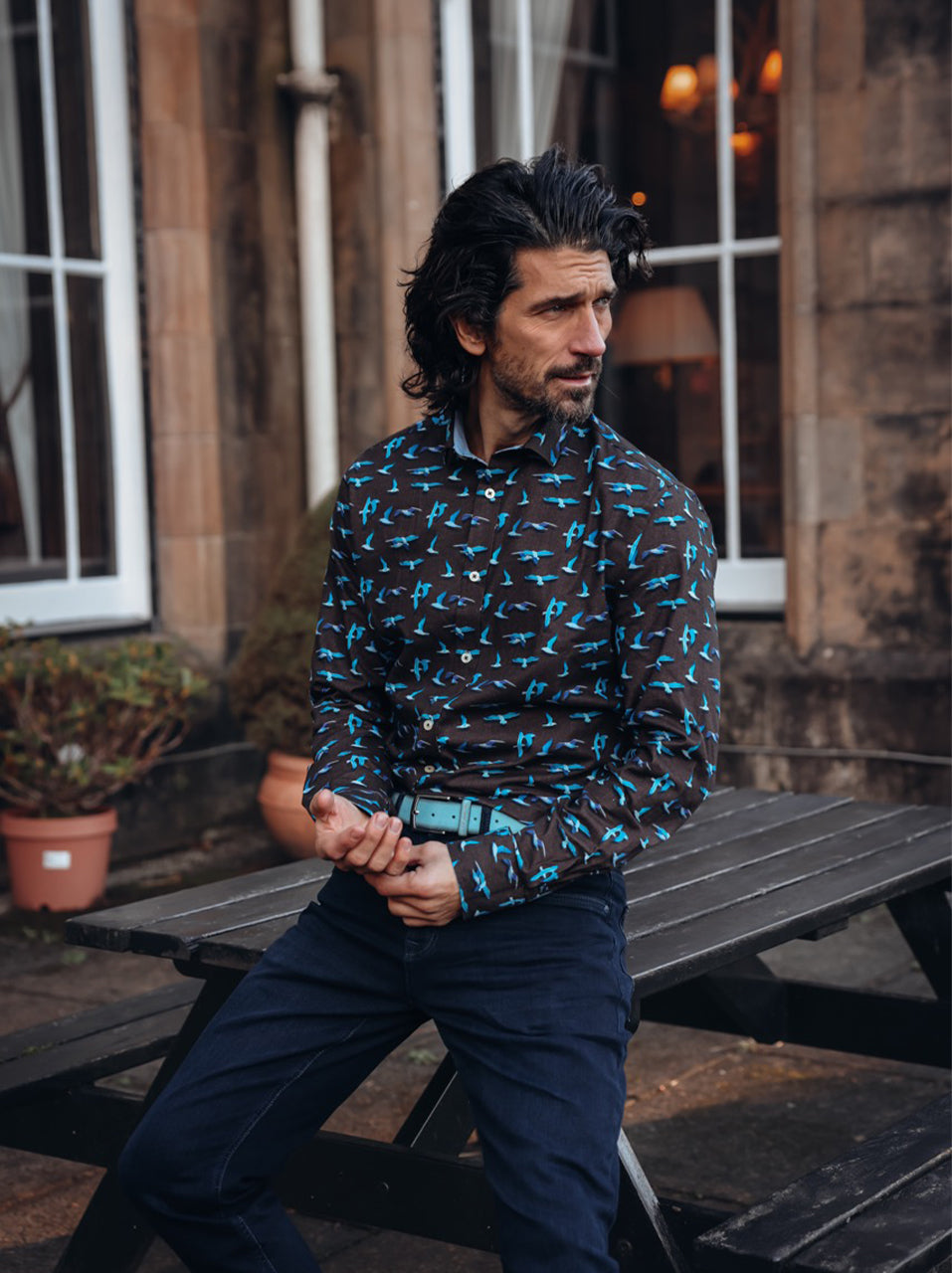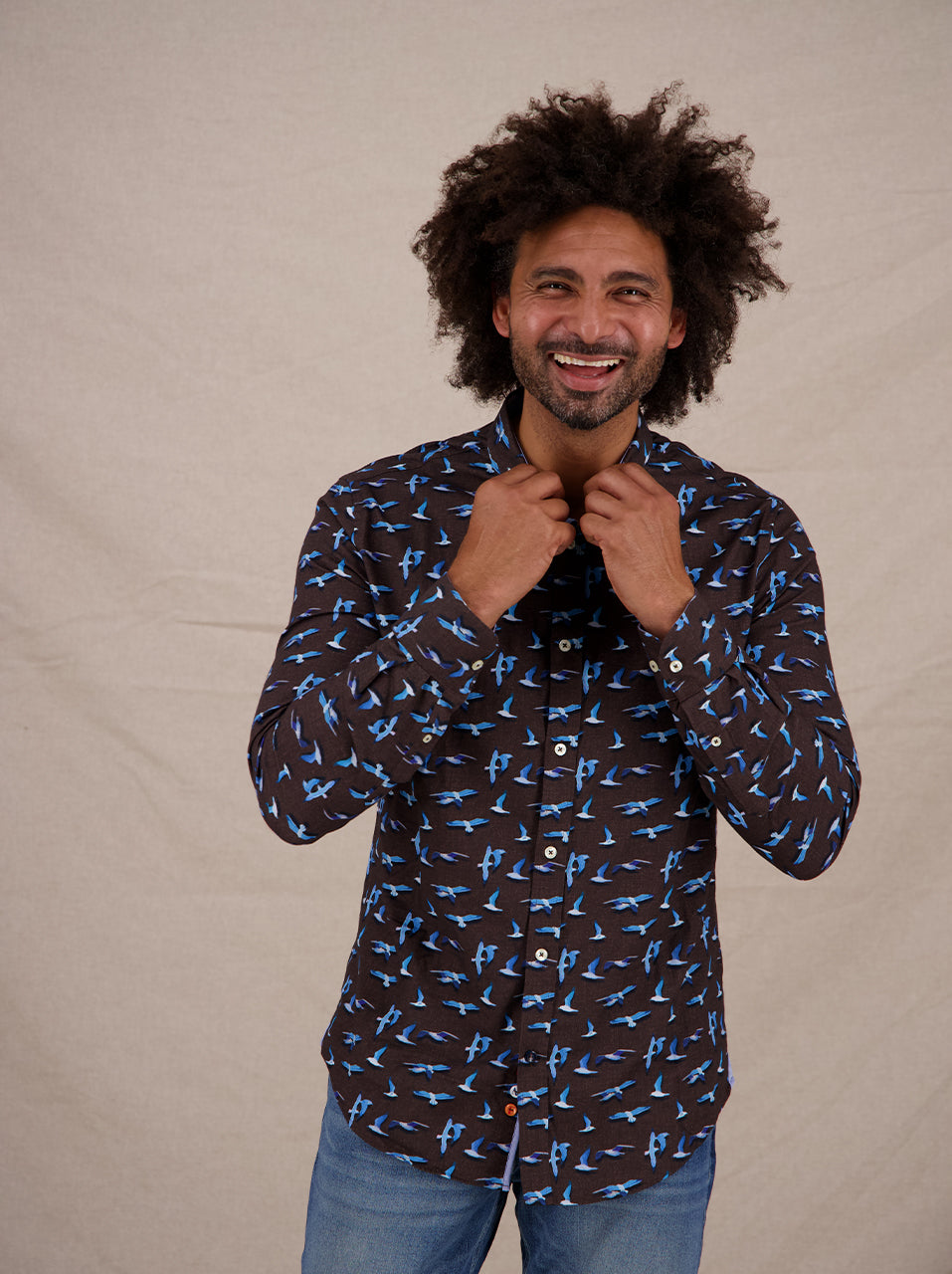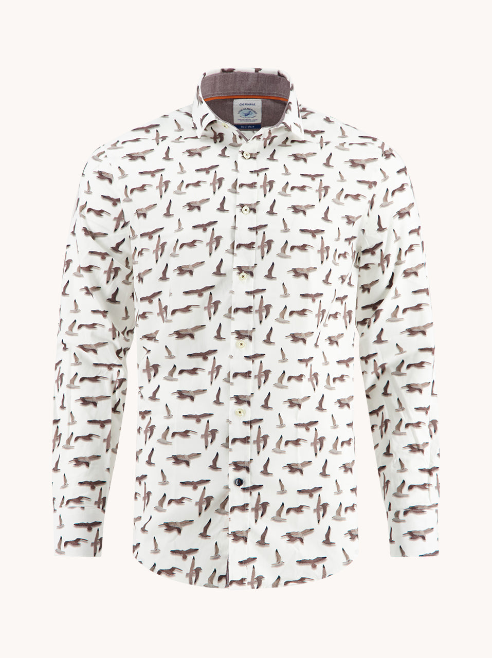 Het Seagull overhemd van A Fish Named Fred brengt de vrijheid van de lucht in je garderobe. Met een speels printpatroon van meeuwen straal je nonchalante elegantie uit. Perfect te combineren met een donkerblauwe blazer en een chino.
