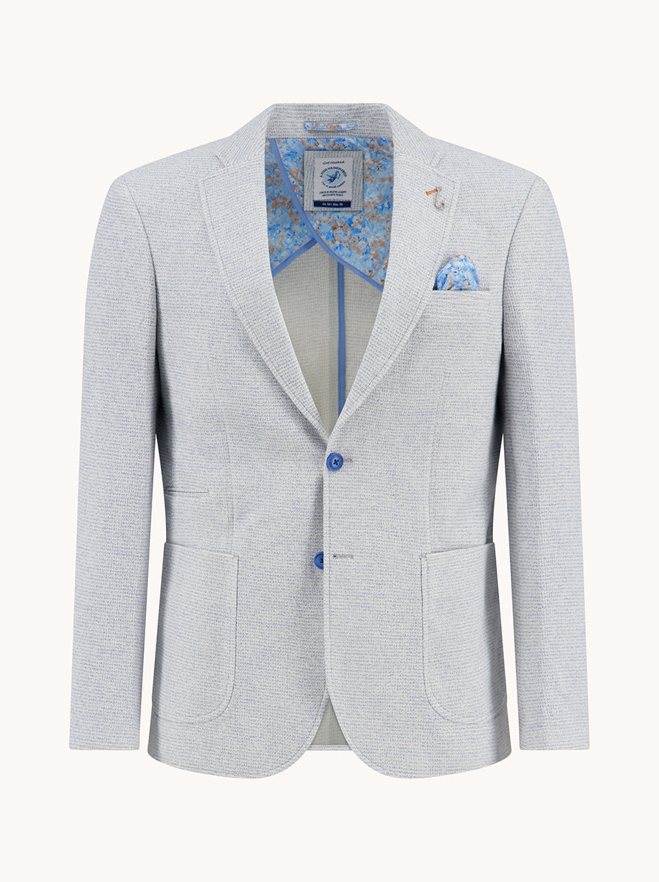 Uitgevoerd met de kenmerkende kleurrijke voering, het bijpassende pochet en natuurlijk het herkenbare vishaakje op de revers. Perfect voor zonnige dagen waarop je moeiteloos indruk wilt maken.