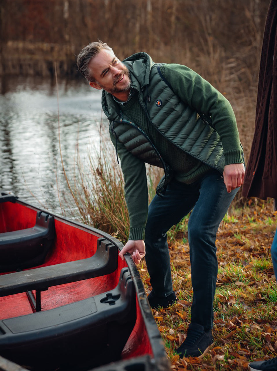 Lichtgewicht bodywarmer met gewatteerde voering en capuchon. Ideaal als extra laag.