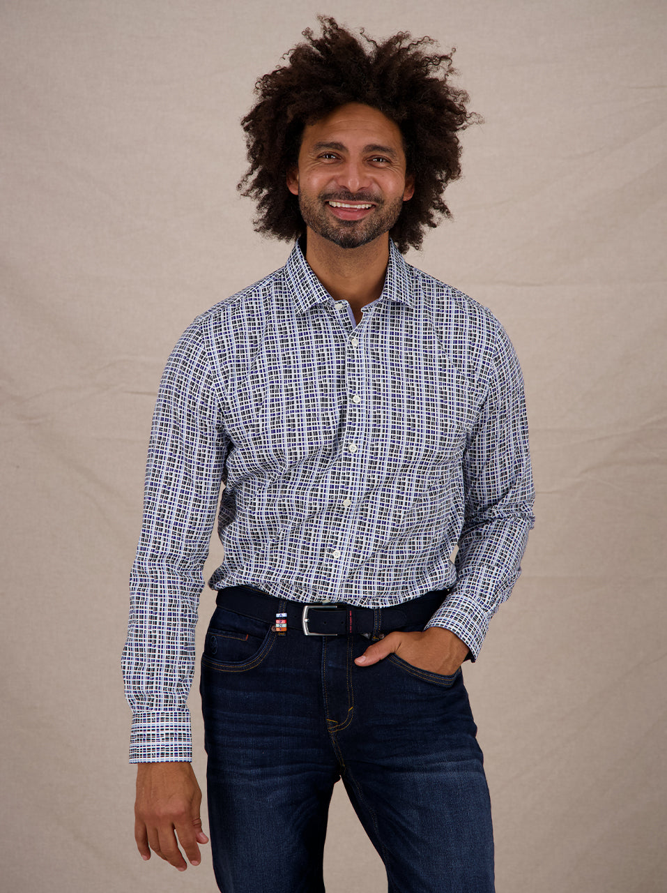 Geen standaard ruit maar een Fred-ruit. Dit A Fish Named Fred overhemd met uneven check print geeft je look een speels ritme en een verrassende twist. Draag het met een effen blazer en een jeans voor een moderne combinatie die net zo onvoorspelbaar is als Fred zelf.