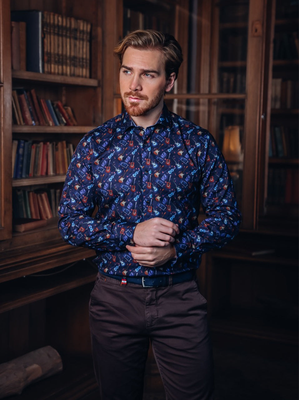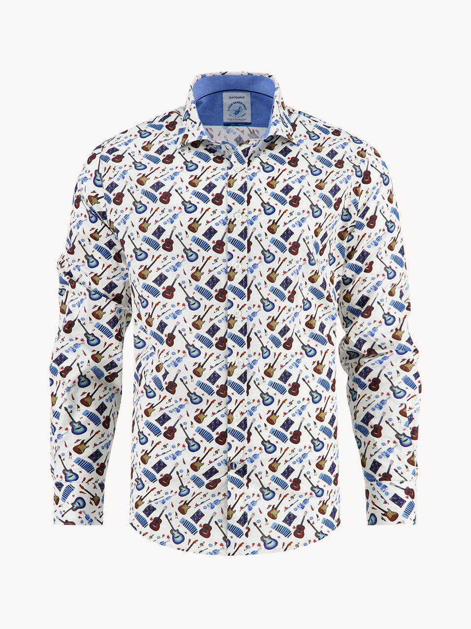 Speel de juiste noot met dit A Fish Named Fred overhemd! De vrolijke gitaarprint laat zien dat stijl en muziek hand in hand gaan. Perfect voor een avond uit of een casual Friday – dit overhemd rockt altijd.